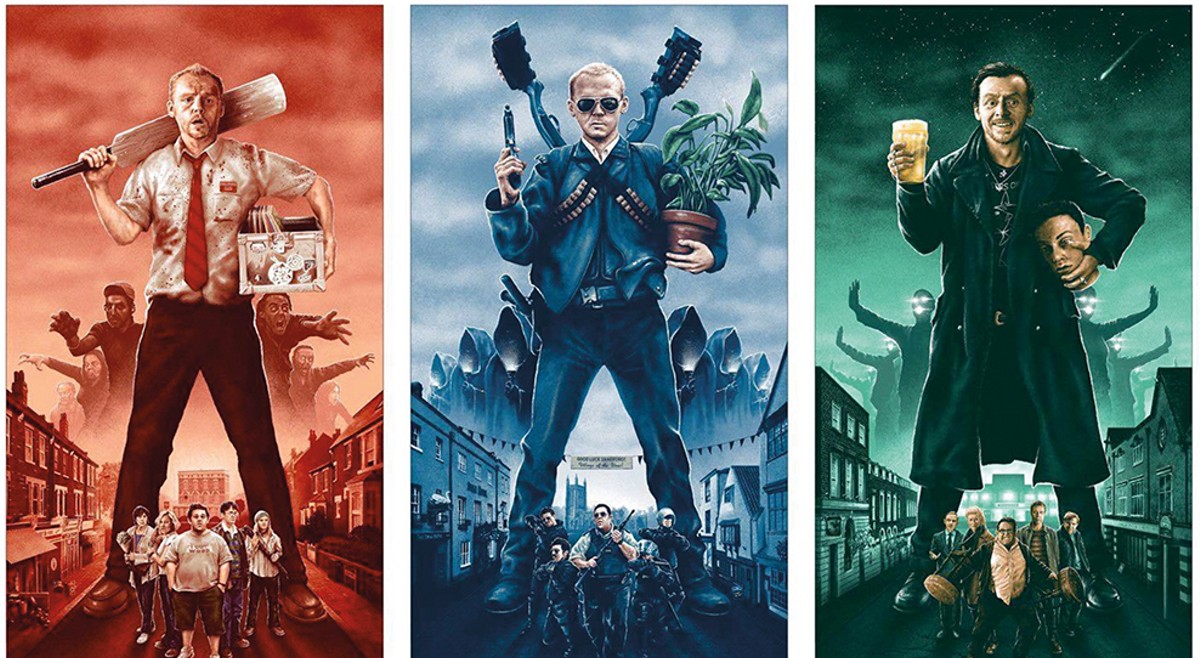 click to enlarge      POSTER ART   Edgar Wright’s Three Flavours Cornetto trilogy sees English funnymen Simon Pegg and Nick Frost battling back against all manner of evil.
